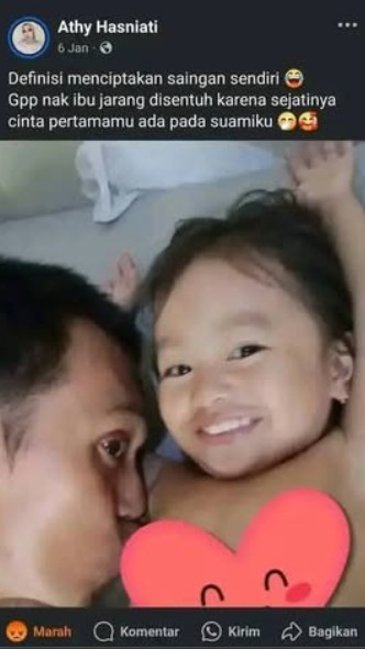 Seorang ibu alias istri menjadi viral akhir-akhir ini yang di sebabkan oleh postingan nya sendiri di sosial media yang mengunggah sebuah foto anaknya dan suaminya sedang bermesraan layakanya ayah dan anak pada umumnya.
